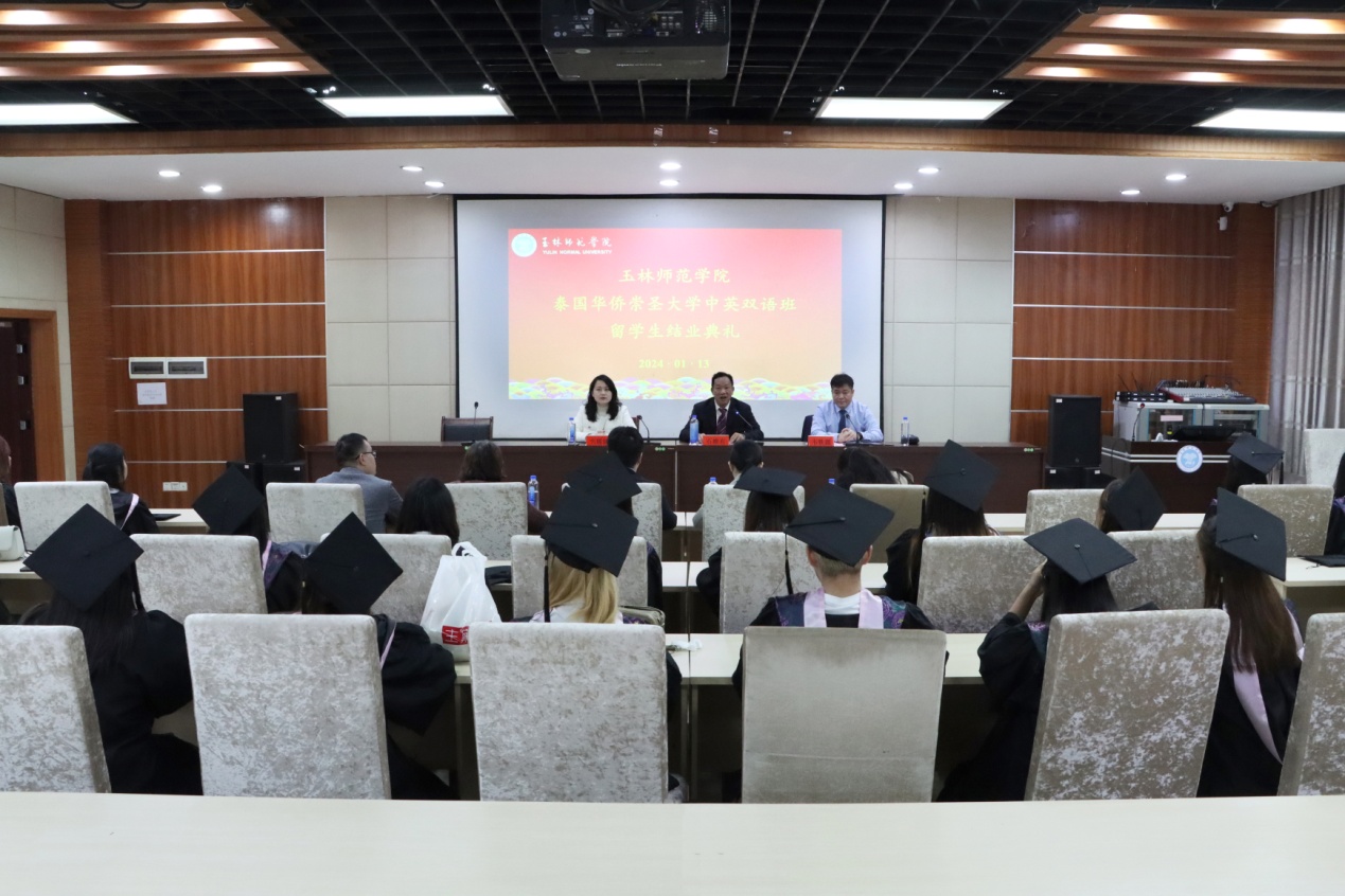 1月13日上午,完美在线登录官网在东校区育师楼青年教师论坛为来自泰国华侨崇圣大学中英双语班的留学生举行结业典礼。完美在线登录官网党委常委、副校长石维有、国际教育学院负责人及相关教学管理人员和中英双语班的全体留学生参加典礼。