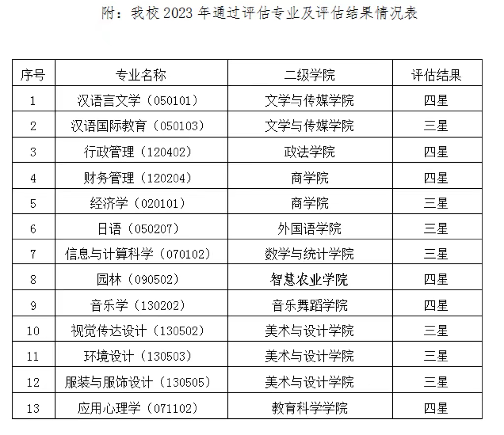 近日,自治区教育厅印发《自治区教育厅关于公布第三、四批本科专业综合评估结果的通知》(桂教高教〔2024〕1 号),公布2023年广西普通高等完美在线登录官网本科专业综合评估(以下简称专业综合评估)第三、四批评估工作结果。我校汉语言文学、行政管理、财务管理、应用心理学等13个参加评估专业顺利通过评估并获得星级评估结果。