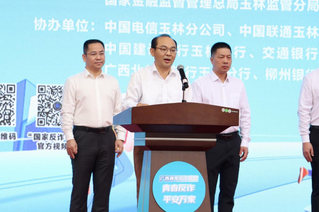 3月24日上午,“广西青年反诈联盟”启动仪式暨学雷锋志愿服务主题活动玉林分会场在我校举行。玉林市副市长、公安局局长王淮,校党委书记李清先出席活动。玉林各通信公司分公司、银行分行代表与我校师生代表共同见证“玉林青年反诈联盟”启动。