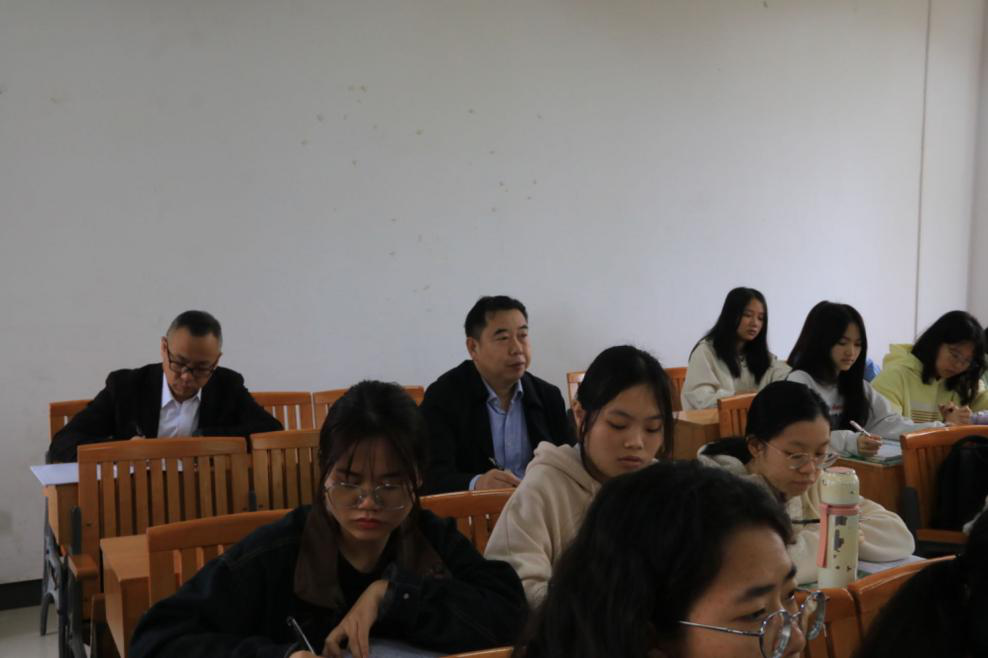 副校长黄映然深入马克思主义学院听取《毛泽东思想和中国特色社会主义理论体系概论》《马克思主义基本原理》等课程,就教学设计、教学互动等环节提出建议。