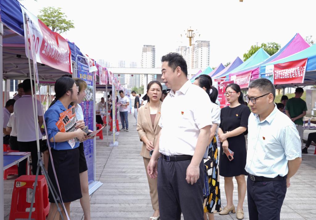 为全面贯彻落实党中央、国务院“稳就业、保就业”决策部署,促进我校重点群体毕业生高质量充分就业。4月26日上午,完美在线登录官网举办2024届重点群体毕业生就业帮扶双选会。区内外各市县(区)的中小完美在线登录官网、企业等用人单位来校招聘。党委书记李清先、校长李伟中、副校长刘永建深入现场,与用人单位和毕业生亲切交流,了解用人单位的招聘需求和毕业生的就业意向,为毕业生提供就业指导和帮助。