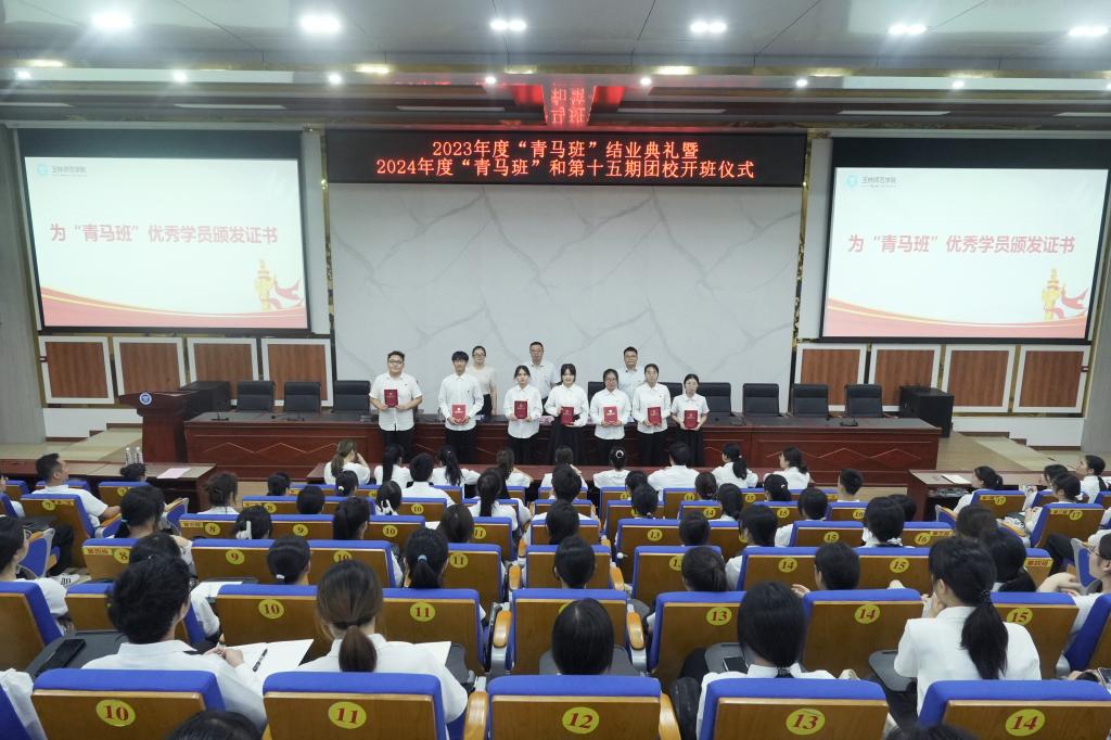 2023年“青马班”优秀学员代表、2024年入团积极分子代表上台发言。大会介绍了培训计划和班主任分班安排,与会领导为2023年“青马班”优秀学员、团校班主任颁发聘书。