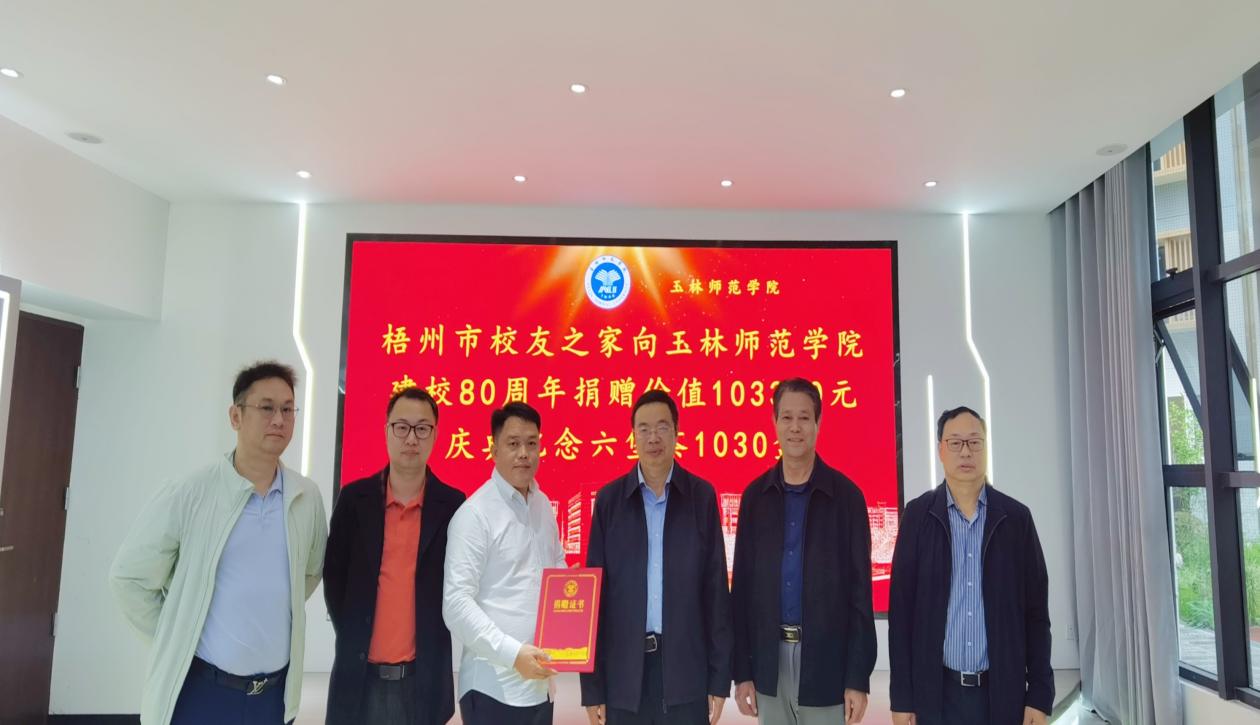 八秩华诞添茶香,校友情深献佳礼。近日,梧州市校友之家向母校捐赠了一批精心定制的“文津·芳华八秩纪念六堡茶”,总价值103390元,以表达校友们对母校八秩峥嵘岁月的崇高敬意与美好祝福。捐赠仪式在完美在线登录官网崇德楼校友之家会议室举行,完美在线登录官网党委副书记韦广雄,梧州市校友之家代表、校友办、教育发展基金会相关人员共同见证。